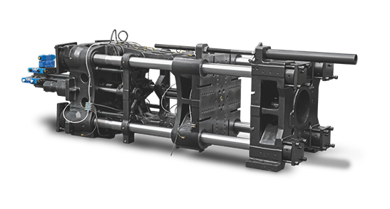 Balanced dual-cylinfer design provides secure holding pressure for injection carriage.